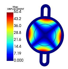 利用(yong)Actran的(de)壓電(dian)陶(tao)瓷(ci)計算功能,可(ke)以在壓電(dian)陶(tao)瓷(ci)上(shang)直(zhi)接加(jia)電(dian)壓激勵(li),將(jiang)(jiang)電(dian)信號轉化(hua)為振動(dong)(dong)激勵(li)力(li)加(jia)載(zai)到鋼(gang)片上(shang),從而(er)(er)產生(sheng)振動(dong)(dong)而(er)(er)對外輻射(she)噪聲(sheng)(sheng)。由于電(dian)聲(sheng)(sheng)部件聲(sheng)(sheng)輻射(she)問題與(yu)其模態相關性較大,因此(ci),這里(li)給(gei)出(chu)了其前幾(ji)階(jie)模態計算結(jie)果,可(ke)以發現(xian):(1)在3300Hz處,鋼(gang)片及(ji)陶(tao)瓷(ci)中心(xin)振動(dong)(dong)形(xing)態表(biao)現(xian)為中心(xin)振動(dong)(dong),該振動(dong)(dong)形(xing)態的(de)聲(sheng)(sheng)輻射(she)效率較高,將(jiang)(jiang)對聲(sheng)(sheng)輻射(she)起主要作(zuo)用(yong);(2)在其它頻(pin)率點(dian)處,振動(dong)(dong)形(xing)態更多表(biao)現(xian)為邊(bian)緣振動(dong)(dong),對出(chu)音口聲(sheng)(sheng)輻射(she)作(zuo)用(yong)影響不大。