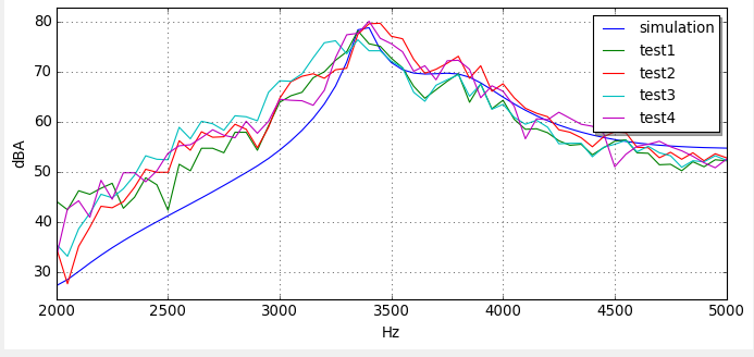 本文(wen)介紹利用專業(ye)聲學軟件Actran對壓(ya)電(dian)式報警(jing)器聲學問(wen)題的(de)(de)詳細(xi)計(ji)(ji)算流(liu)程(cheng),并對比Actran的(de)(de)計(ji)(ji)算與(yu)測試(shi)(shi)結果。結果表明,計(ji)(ji)算值(zhi)與(yu)測量值(zhi)有(you)很好(hao)的(de)(de)一致性,說(shuo)明Actran軟件可(ke)滿足(zu)壓(ya)電(dian)式報警(jing)器設(she)計(ji)(ji)中對聲學模(mo)擬的(de)(de)需求(寬(kuan)頻帶的(de)(de)聲固耦合聲輻射問(wen)題),可(ke)顯著減少模(mo)型(xing)試(shi)(shi)驗次數,并能對設(she)計(ji)(ji)方(fang)案(an)提供指導意見和改進(jin)建議(yi)。基于數值(zhi)模(mo)擬方(fang)法(fa)的(de)(de)聲學設(she)計(ji)(ji)可(ke)以逐步取(qu)代(dai)或者部分(fen)取(qu)代(dai)經驗設(she)計(ji)(ji),可(ke)高效的(de)(de)用于指導報警(jing)器的(de)(de)聲學性能設(she)計(ji)(ji)。