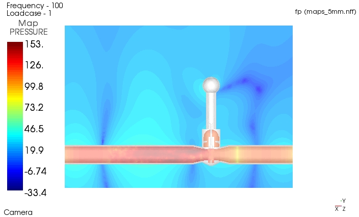 案例2:管道閥門聲振耦合計算模型及聲場云圖